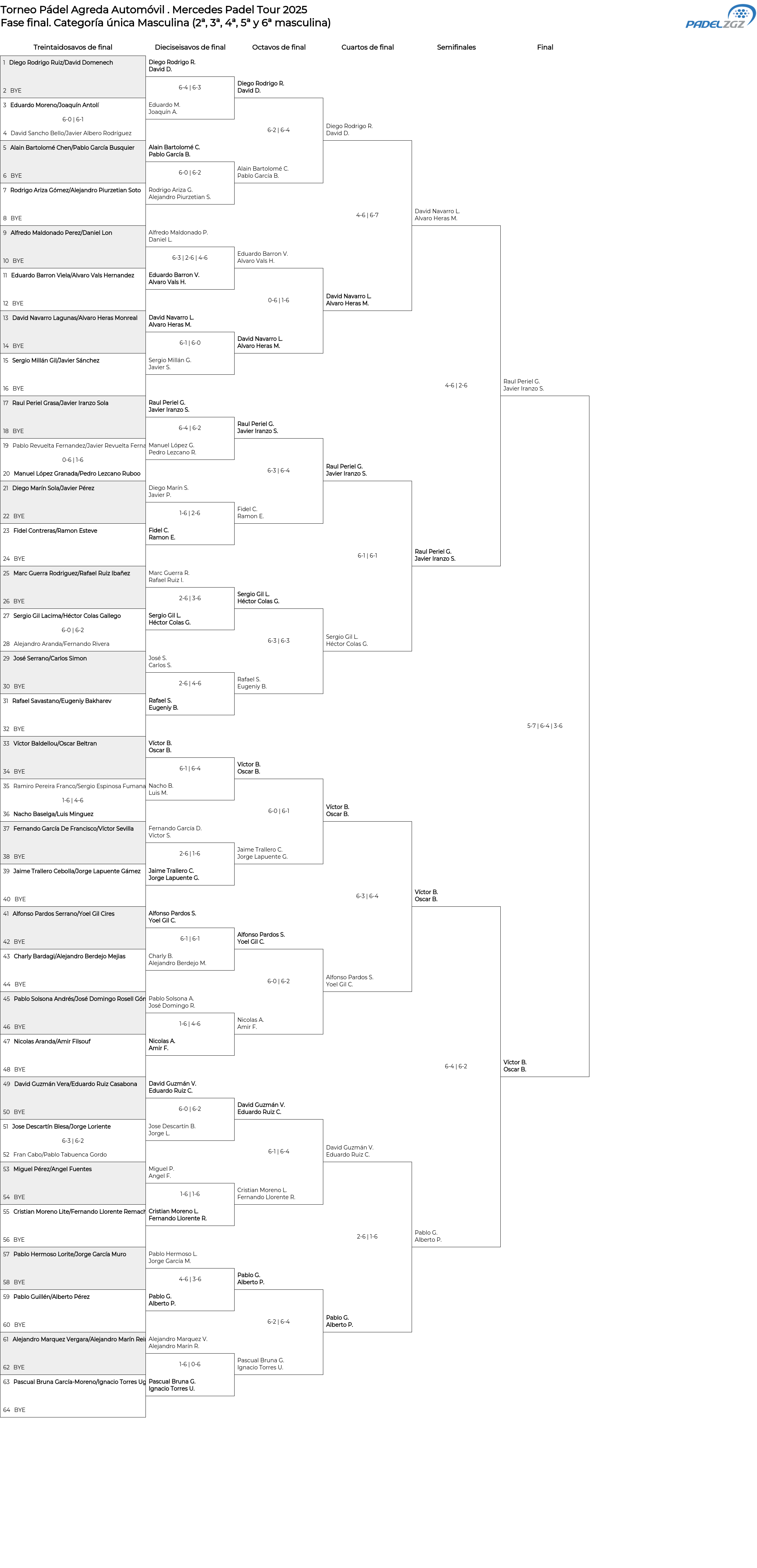 Cuadro principal Categoría única Masculina (2ª, 3ª, 4ª, 5ª y 6ª masculina)