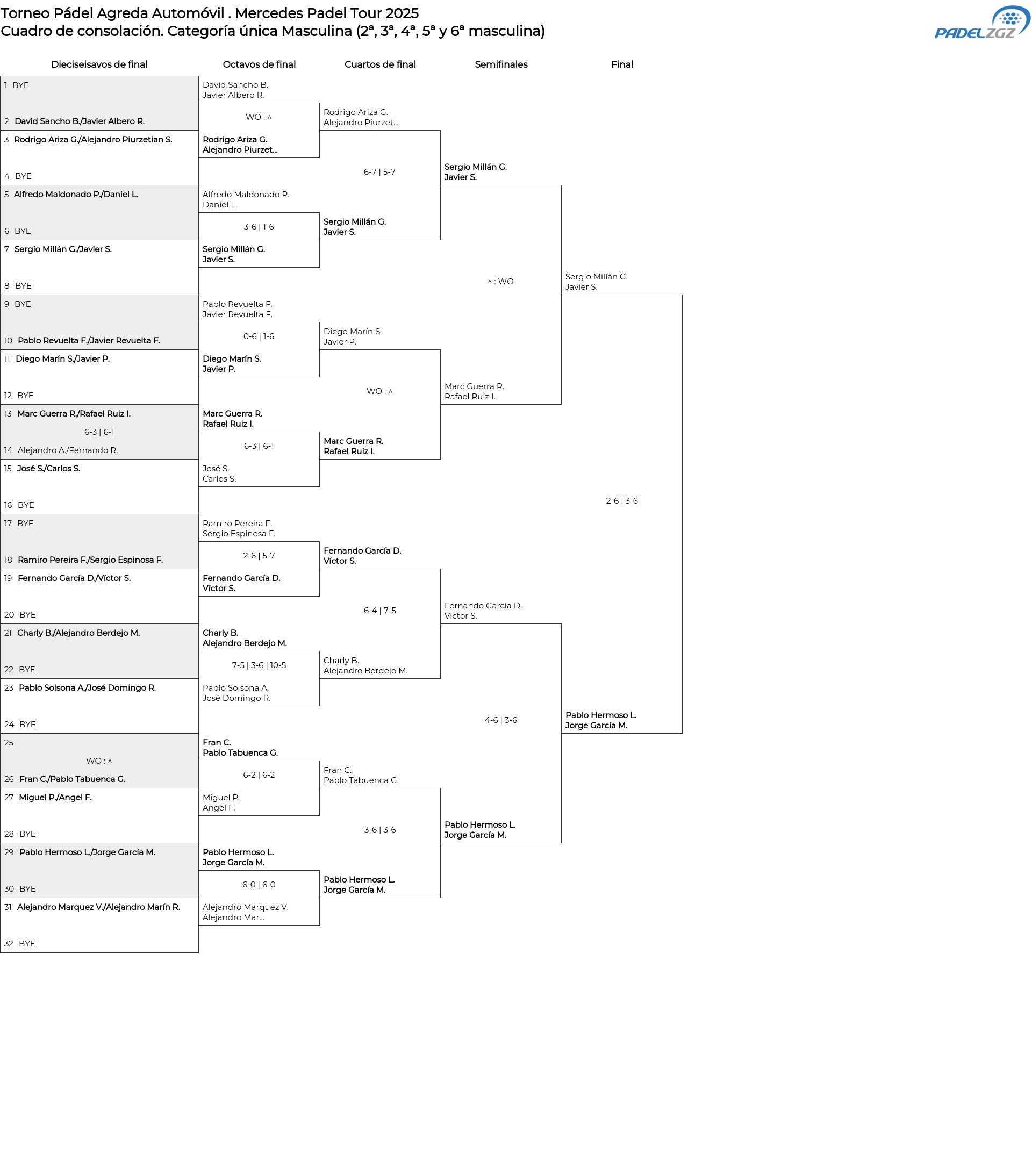 Cuadro de consolación Categoría única Masculina (2ª, 3ª, 4ª, 5ª y 6ª masculina)