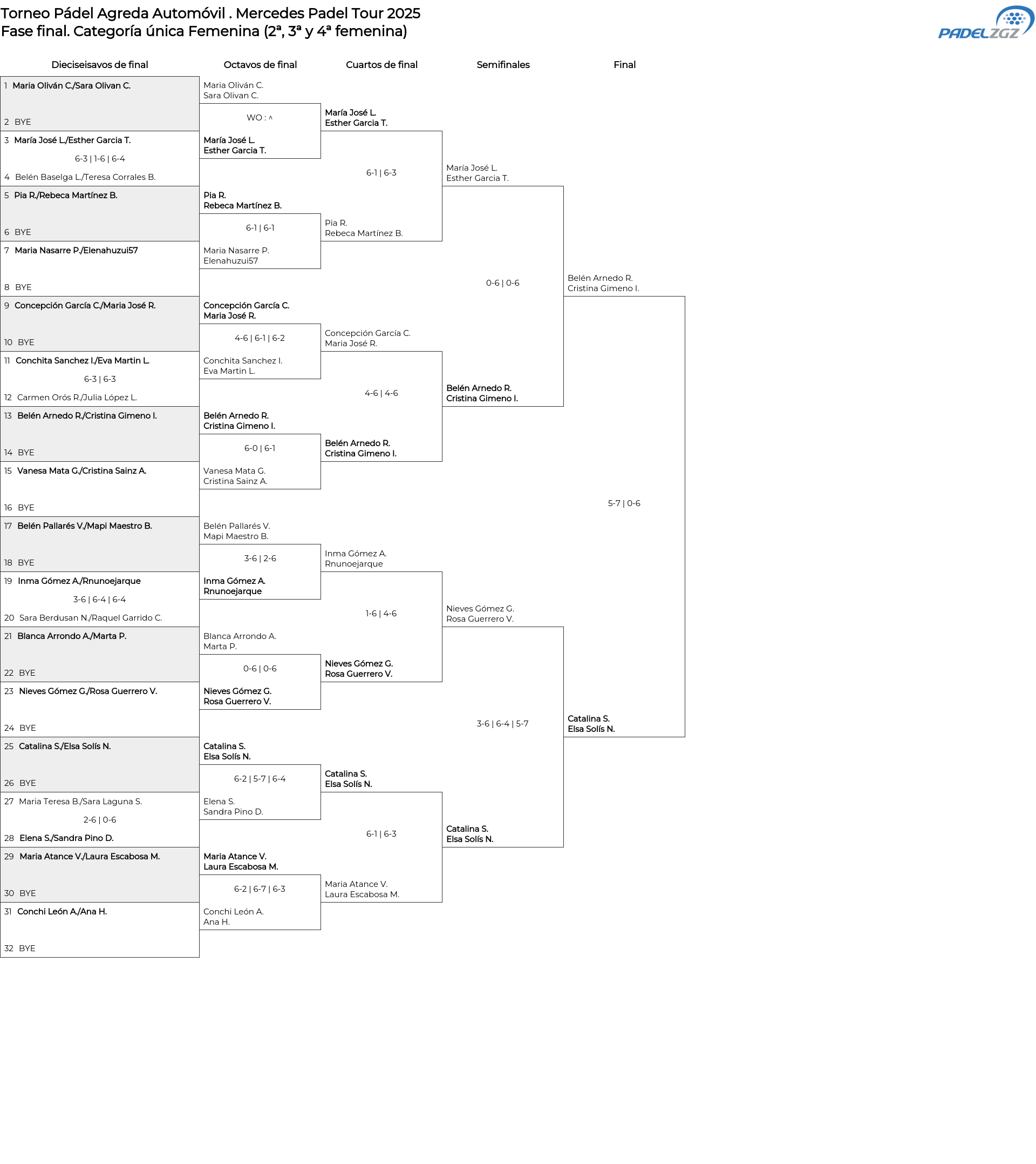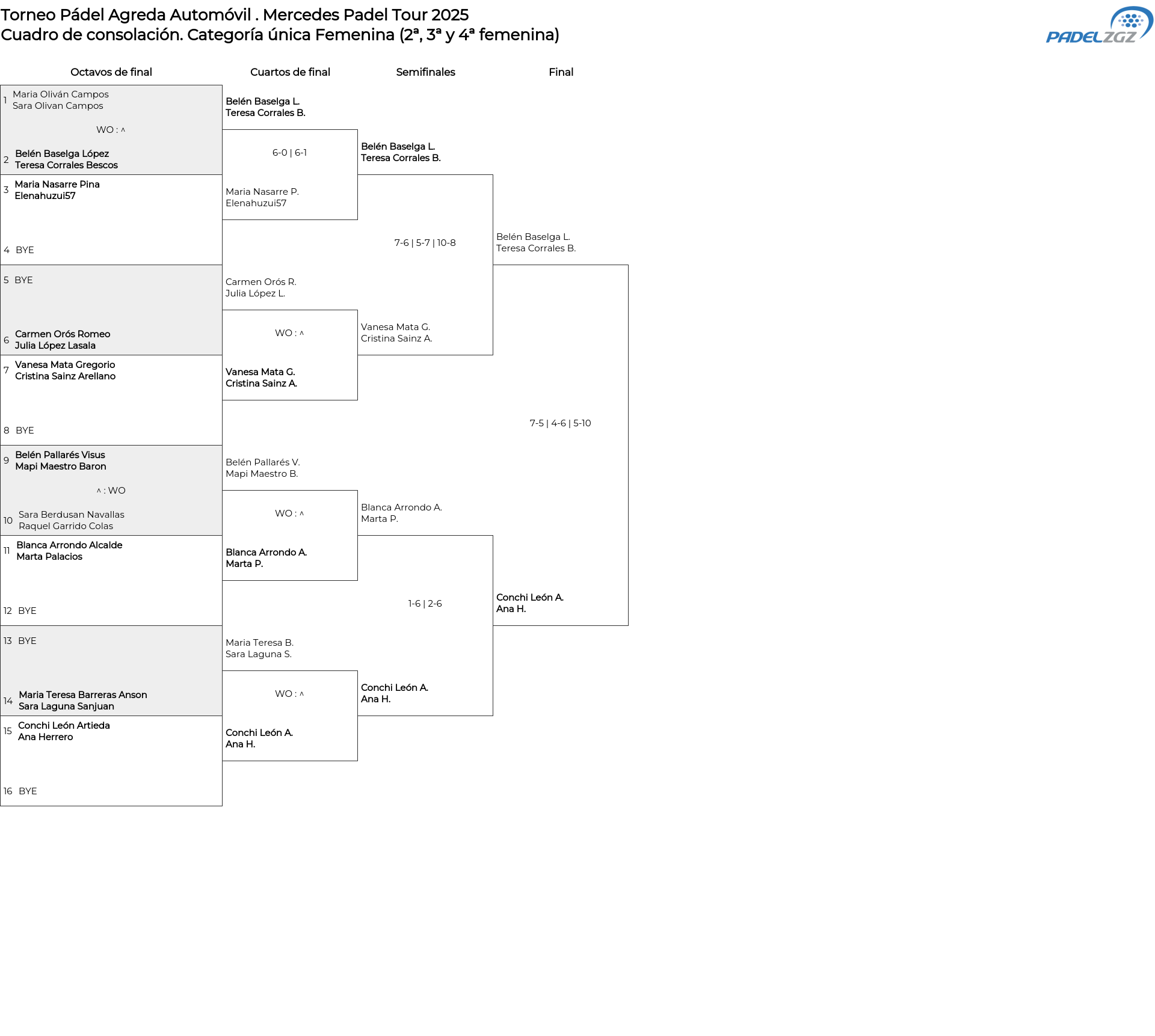 Cuadro de consolación Categoría única Femenina (2ª, 3ª y 4ª femenina)