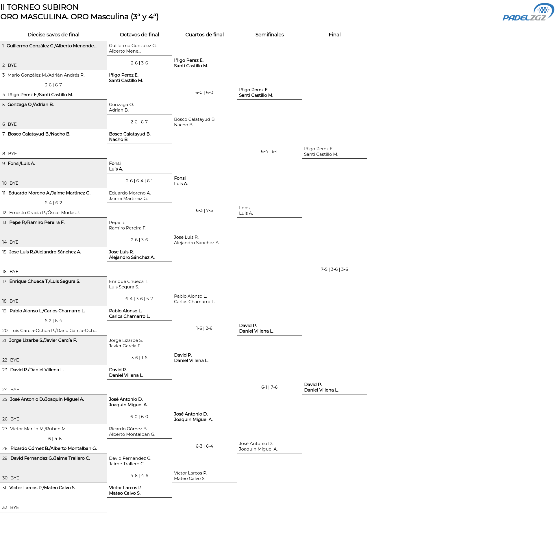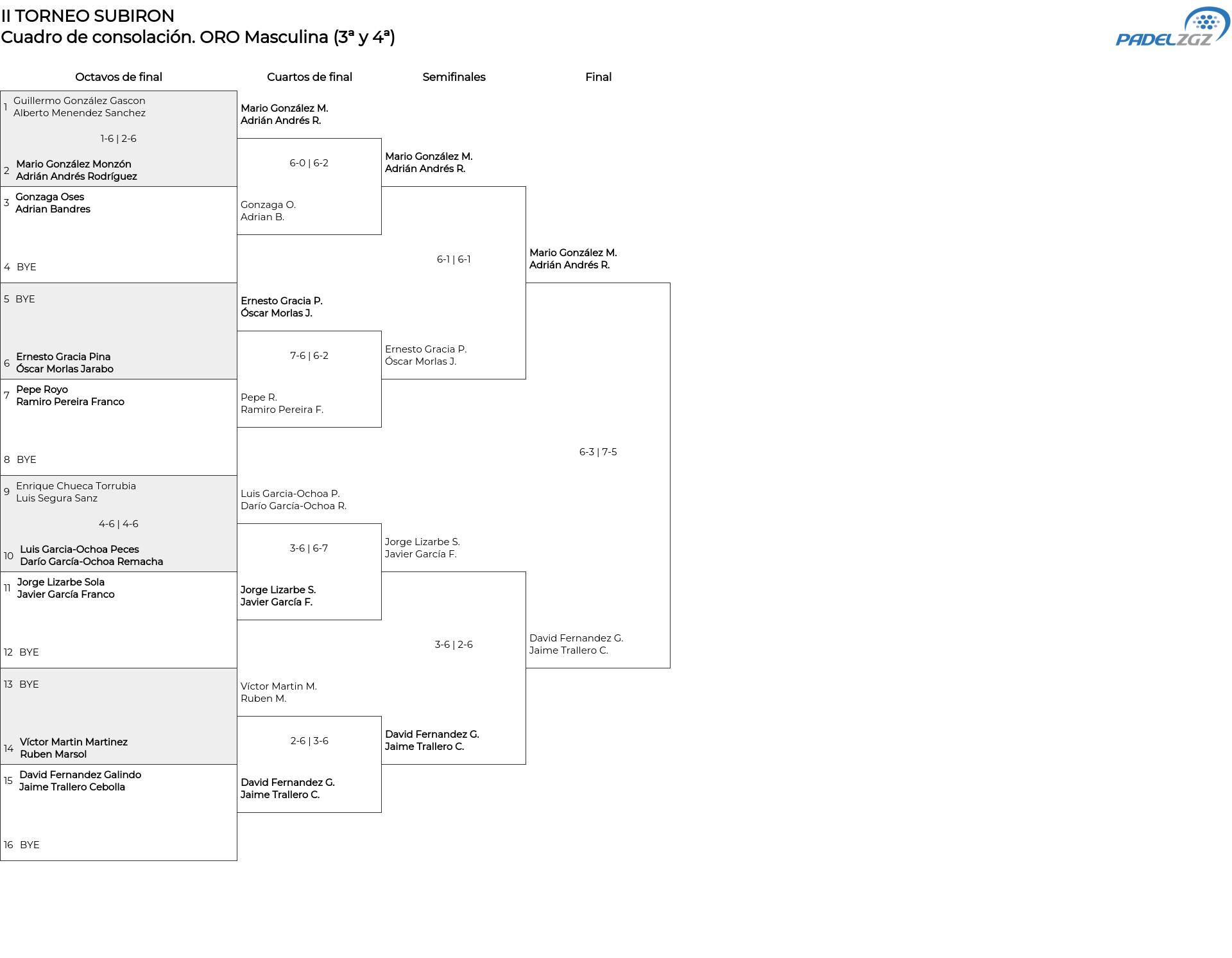 Cuadro de consolación ORO Masculina (3ª y 4ª)