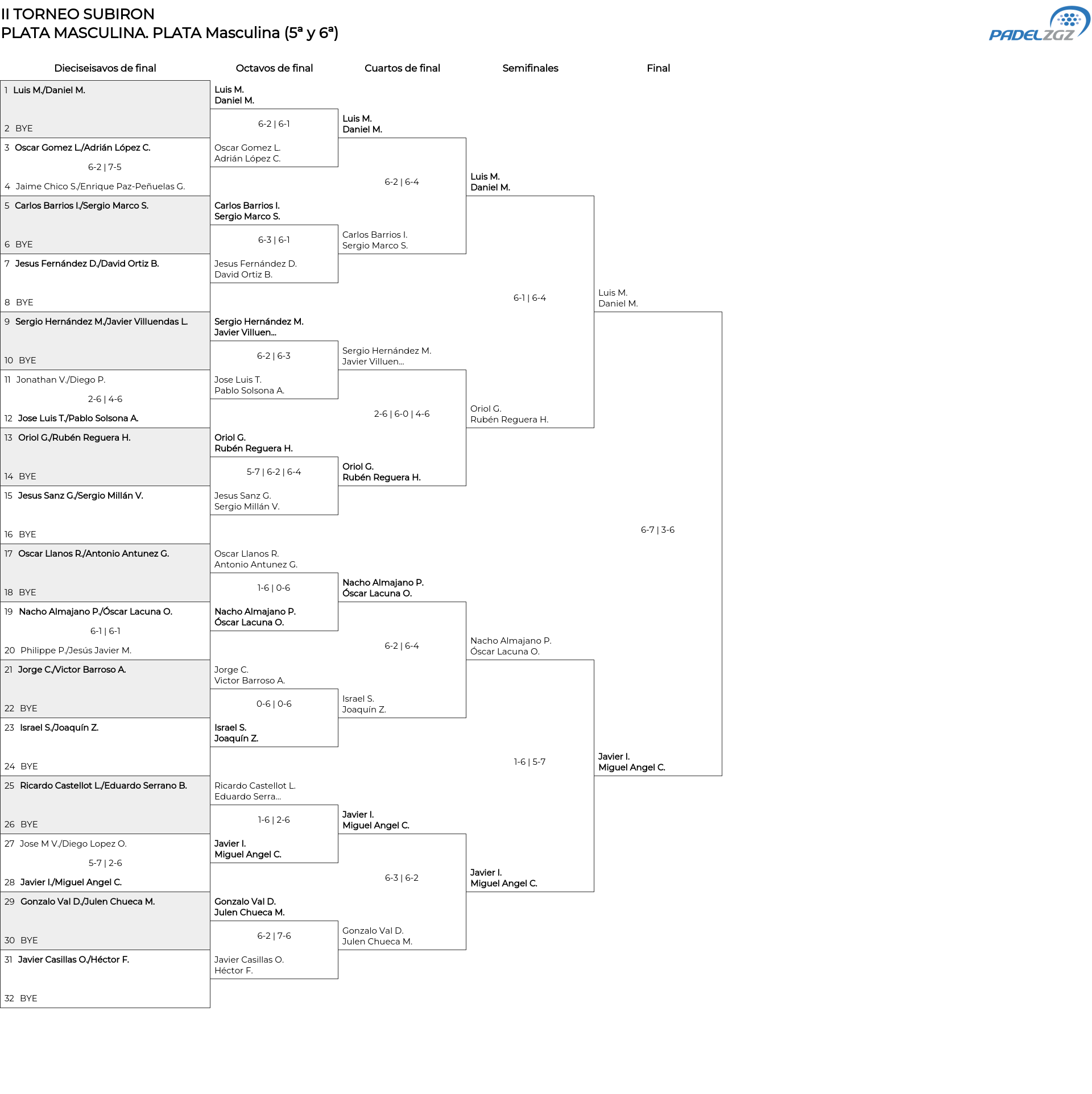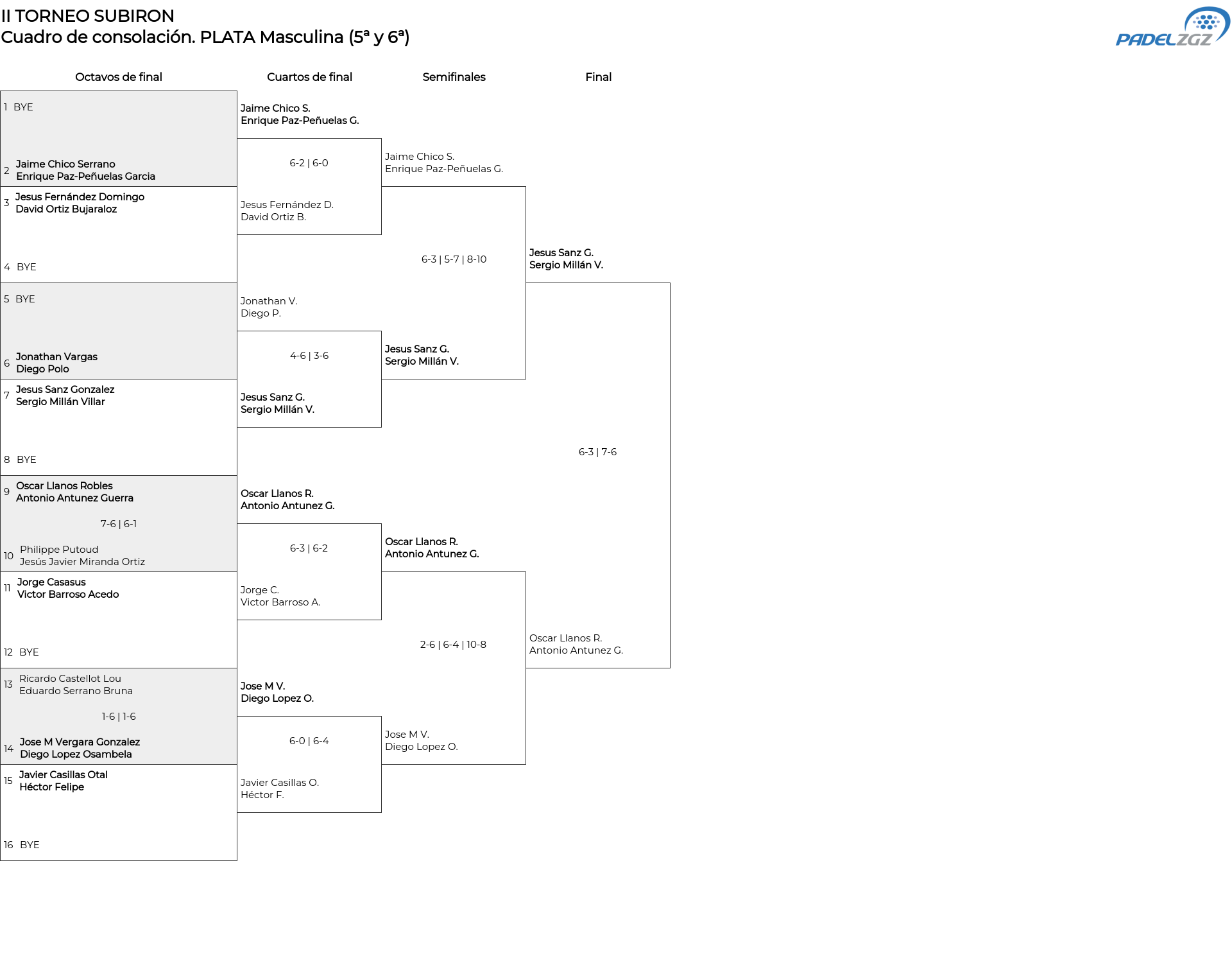Cuadro principal PLATA Masculina (5ª y 6ª)