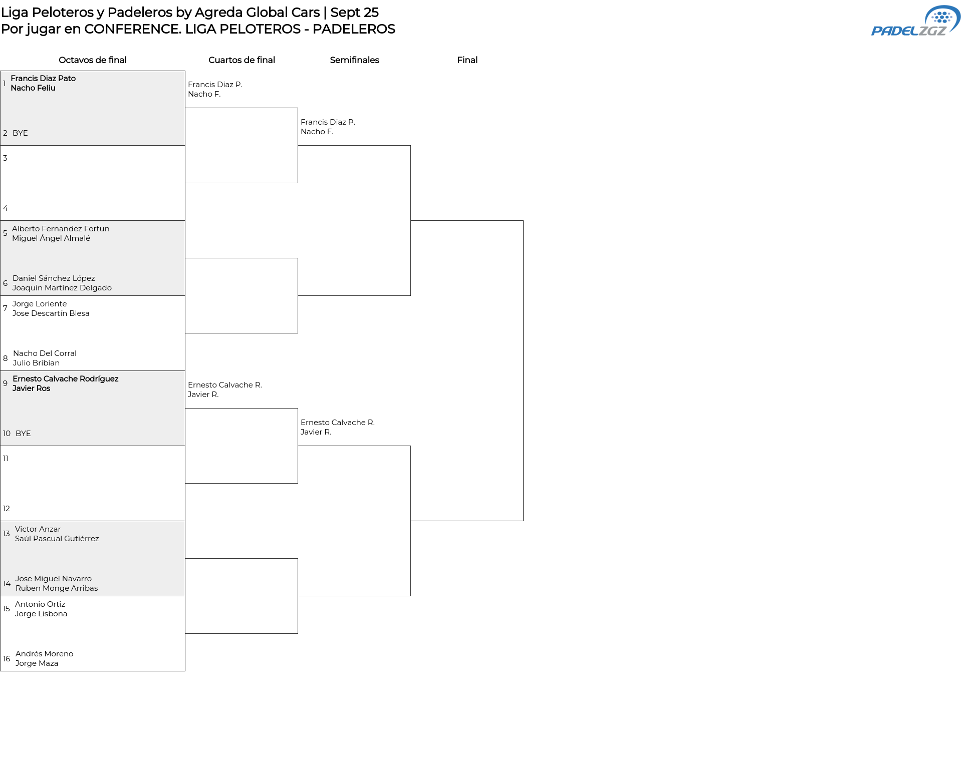 Cuadro principal LIGA PELOTEROS - PADELEROS
