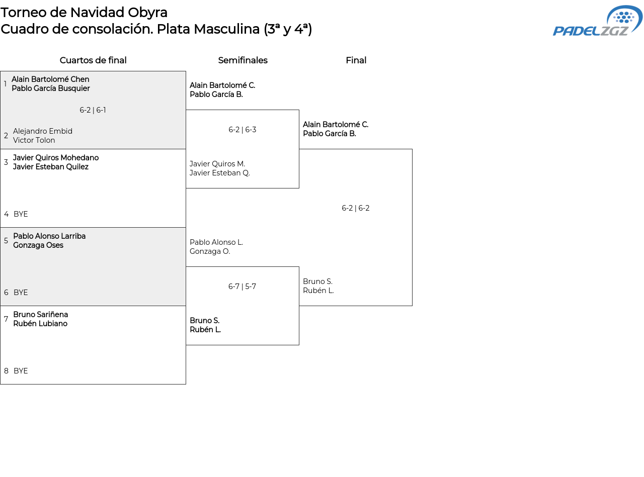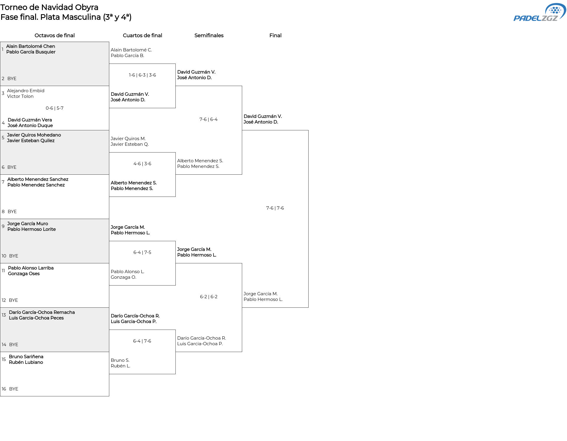 Cuadro principal Plata Masculina (3ª y 4ª)