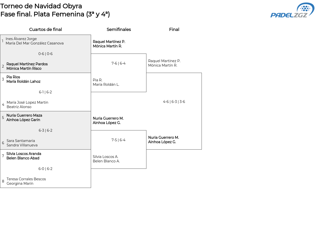 Cuadro principal Plata Femenina (3ª y 4ª)
